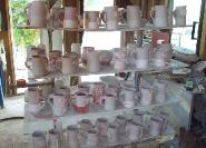 Mugs made in 2014 with Primo at Primo Pottery. We did about 250 mugs. He threw them on the